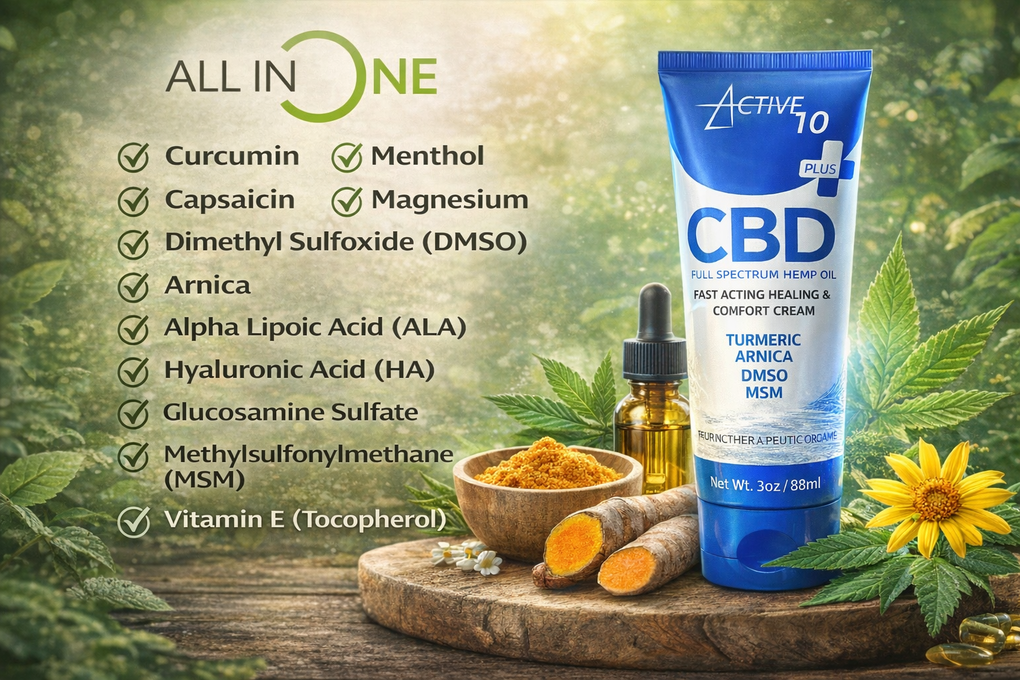 Active10 PLUS is our most advanced topical comfort formula yet — now enhanced with premium hemp-derived CBD to support everyday muscle and joint wellness.